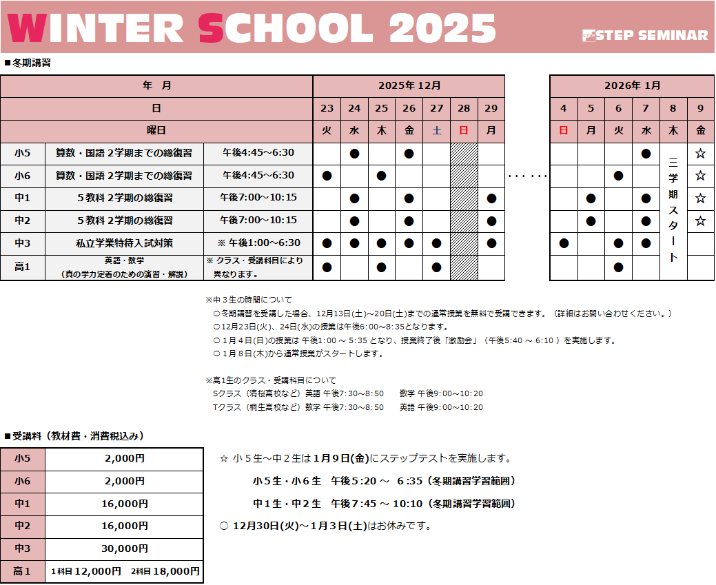 ※各予定は学校行事や校舎の事情により変更になることがございます。
